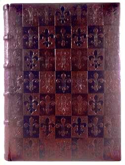 Nigerian goat sumac tanned and dyed by the artist, blind tooled with Florentine lily design drawn by Phillips, made into intaglio, relief and outline tools. Hinges of same skin, with doublures of the same skin reversed. This book is a translation of a 13th century Florentine bookbinding design (in the British Library) into a contemporary British bookbinding idiom. The skin was tanned by Minsky at the National Leathersellers Center in Northampton, England. The paper was hand made in England. The finishing tools were engraved in England. The binding was done in England.