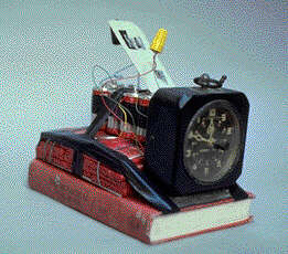 Book, live explosives, batteries, timer, electrical tape, photocopy, envelope, collage.