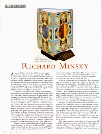 Minsky" by Scott Brown Below is a scan of this article so you can see their beautiful layout. You can also read this article as a web page at the Fine Books & Collections website. There you can also order a copy of this issue, which includes the top 50 books sold at auction in the last year (by price), or subscribe to the magazine. Click on the image to read the article online. |