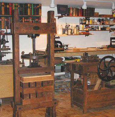 A traditional hand bindery occupies half the gallery building. When visiting you can see work in progress. Click any of the sections below to see Minsky bindings created from 1968 to recently.