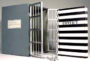 Three unique works, and an edition of 25 sets of ten bookworks representing the first ten amendments to the United States Constitution. Above, The Eighth Amendment. Click on the jail cell to see all the works, and an installation of the exhibition.