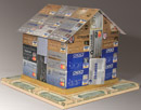 Memoirs of Extraordinary Popular Delusions and the Madness of Crowds by Charles Mackay. Inside the house are two copies of the book, the 1852 edition in the original binding by Burn of Hatton Garden, and the 1963 printing of the 1932 reprint, bound in Minsky's credit cards.