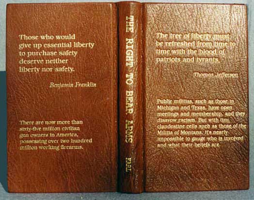 Seven books on the American Militia movement, the right to bear arms, and the gun culture, in a snakeskin cabinet with a Norinco