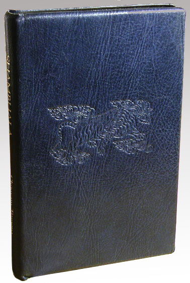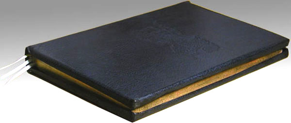 Midnight blue goatskin, blind stamped front and back covers, 23K gold title on spine. Extended leather edges wrap 5/16". Page edges finished with Armenian bole and 22K gold leaf. Commissioned by Molly Sacamano.
