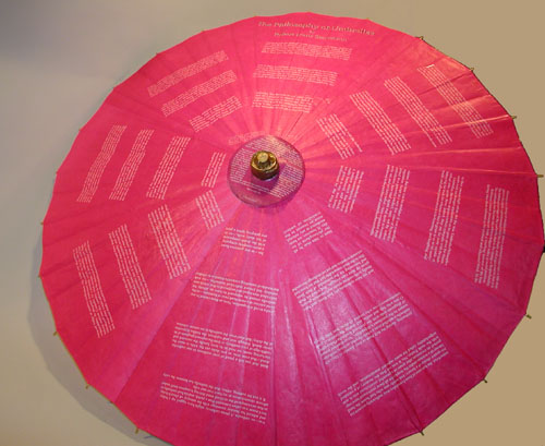 The obvious form for this work would be an umbrella with a text, but what text? I asked Judith for a suggestion and she sent this essay by R. L. Stevenson (1850-1894). It was written while he was in college and first published in The Edinburgh University Magazine, which only existed for four monthly issues (January thru April, 1871).